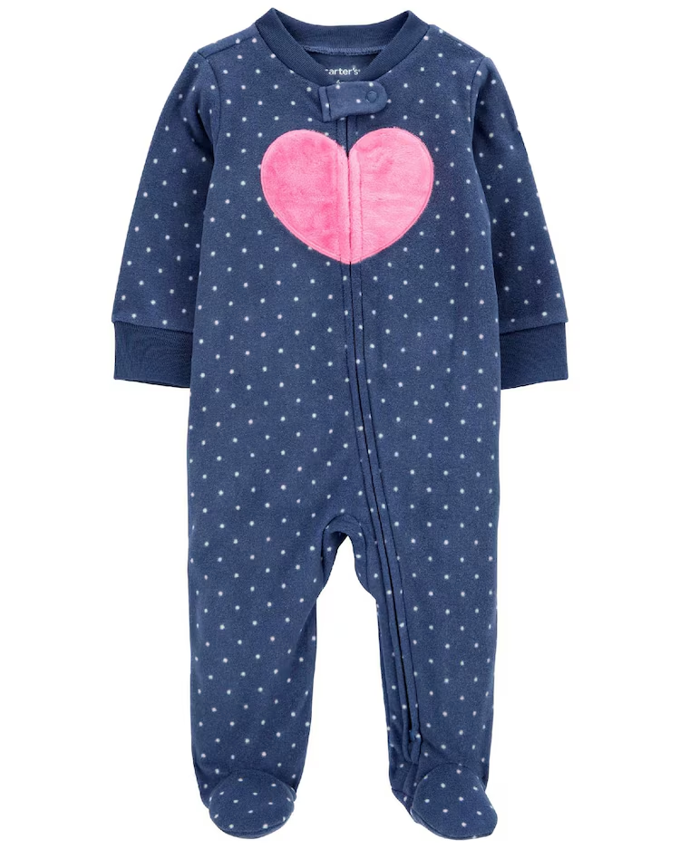 Nós sabemos como é importante ter peças práticas, funcionais, lindas e confortáveis para os primeiros meses de sua baby. Por isso, trazemos o Macacão bebê fleece pézinhos poá coração azul | Carter's. Confeccionado em material macio e aconchegante, a peça possui zíper frontal para facilitar na hora da troca de fralda, além de proteção com a sua bebê na aplicação de martingale. Possui mangas longas, gola redonda, malha fleece e estampa de poá + bordado de coração. É ideal para aqueles dias mais frios, além do modelo esbanjar fofura e delicadeza. Invista!