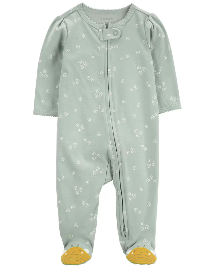 O Macacão bebê mini corações verde | Carter's é confeccionado em material macio e aconchegante, com zíper frontal, mangas longas, gola redonda e estampa de mini corações. É ideal para todos os momentos! O modelo esbanja fofura e delicadeza, invista, sua baby merece.