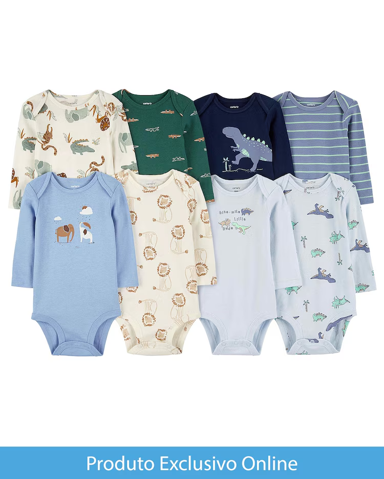 O Enxoval bebê 8 peças manga longa listrado elefantes multicor | Carter's será a pedida certa para aliar conforto e economia para o seu bebê. Produzido em algodão, o enxoval vem com oito bodies de manga longa, ombros traspassados e variam entre estampas diversas, mas também em versões lisas. Aproveite!