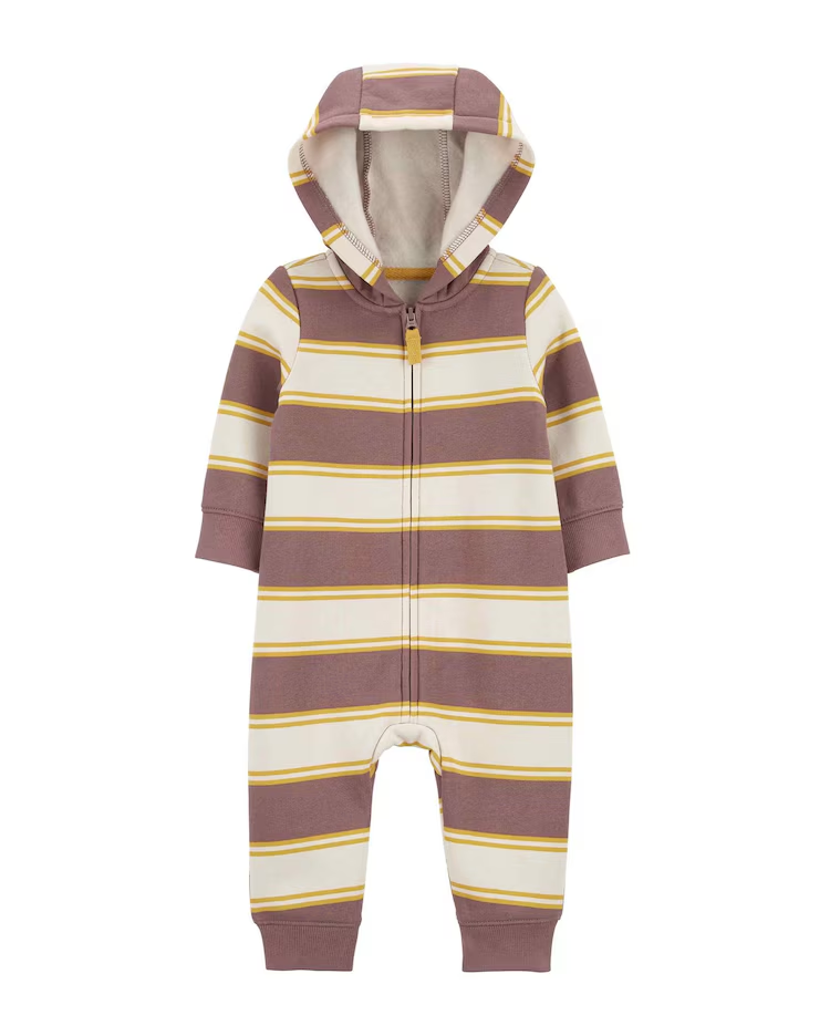 O Macacão bebê listrado com capuz bege | Carter's é confeccionado em material macio e aconchegante, com zíper frontal, abotoamento entrepernas, manga longa, capuz e estampa listrada. É ideal para todos os momentos. O modelo esbanja fofura e delicadeza, invista, seu baby merece.
